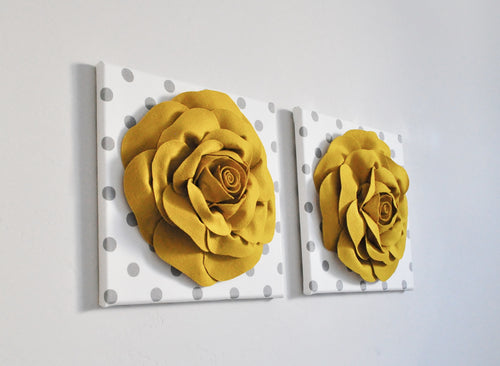 Mustard Dahlia Flowers on Gray Moroccan Canvases