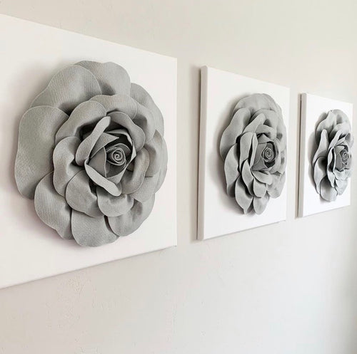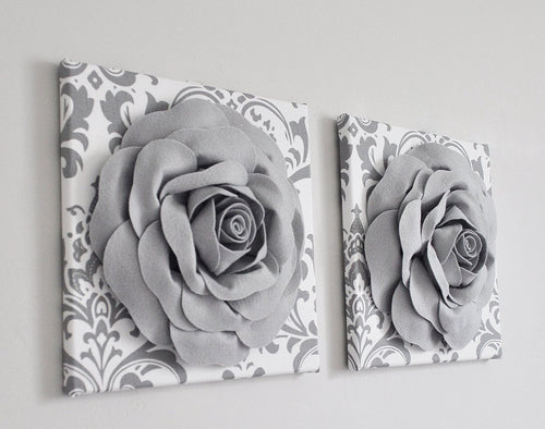 Rose Flowers on White with Gray DAmask Wall Flowers