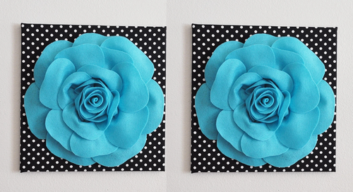 TWO Light Turquoise Roses on Black with White Polka Dot