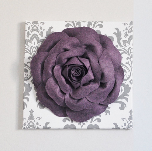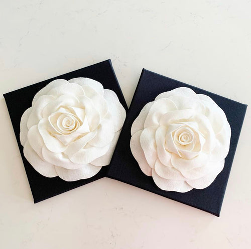 Light Yellow Dahlia on Gray and White Polka Dot Canvas Wall Art- 3D Felt Flower Set of TWO